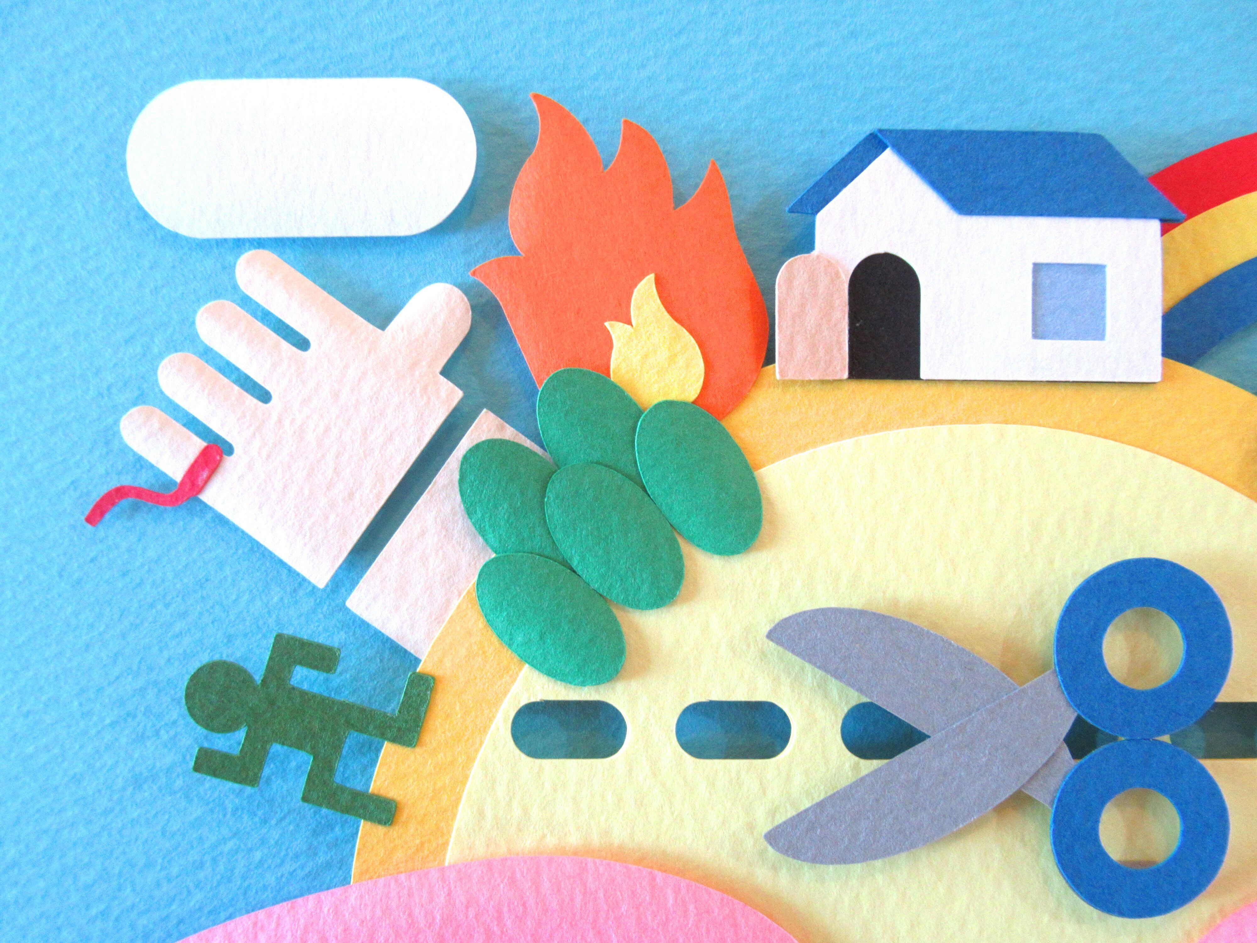 僕がペーパーアーティストなので「切る」を使った慣用句を詰め込んだ言葉遊びの作品です。